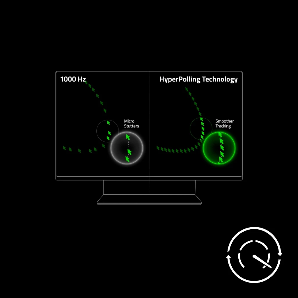 8K HZ HYPERPOLLING TECHNOLOGY — The mouse can communicate its position and clicks to your PC at up to 8000 times a second for near-zero input latency