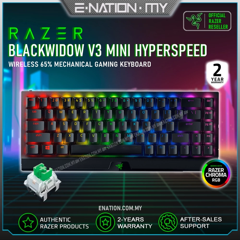 Signature Mechanical Switch for Gaming: Razer Green switch technology provides a satisfying clicky sound with 50 G of actuation force, ideal for typing and gaming requiring the highest accuracy