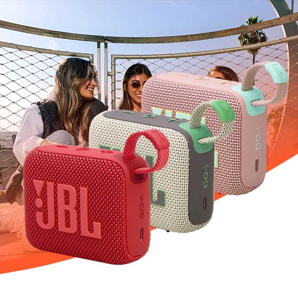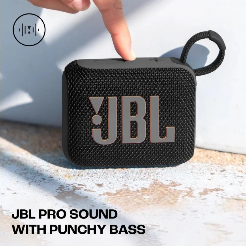 Grab and go: Take big JBL Pro sound wherever you go. The bold, colorful JBL Go 4 ultra-portable Bluetooth speaker fits in the palm of your hand, delivering clear, loud JBL Pro Sound with rich, punchy bass. Its newly redesigned integrated loop makes it easy to bring anywhere.