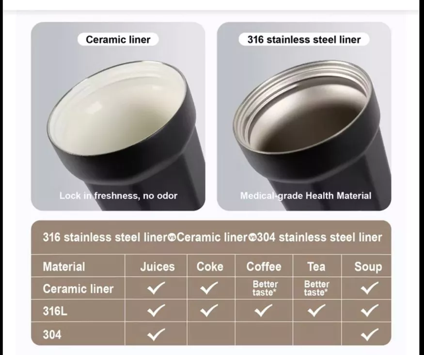 - Ceramic liner optional: Enjoy the firmness of stainless steel and the delicacy of ceramic, double experience, one cup for multiple uses.