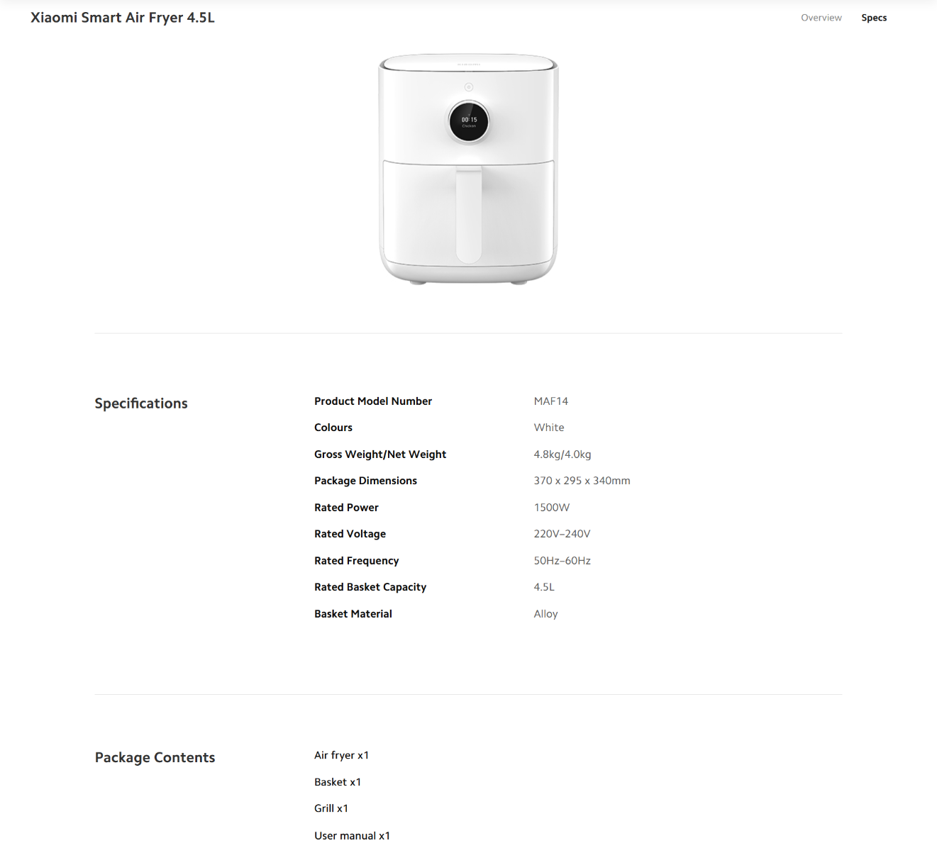 【 Xiaomi Smart Air Fryer 4.5L 】
