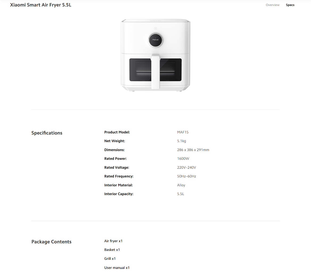 【 Xiaomi Smart Air Fryer 5.5L 】