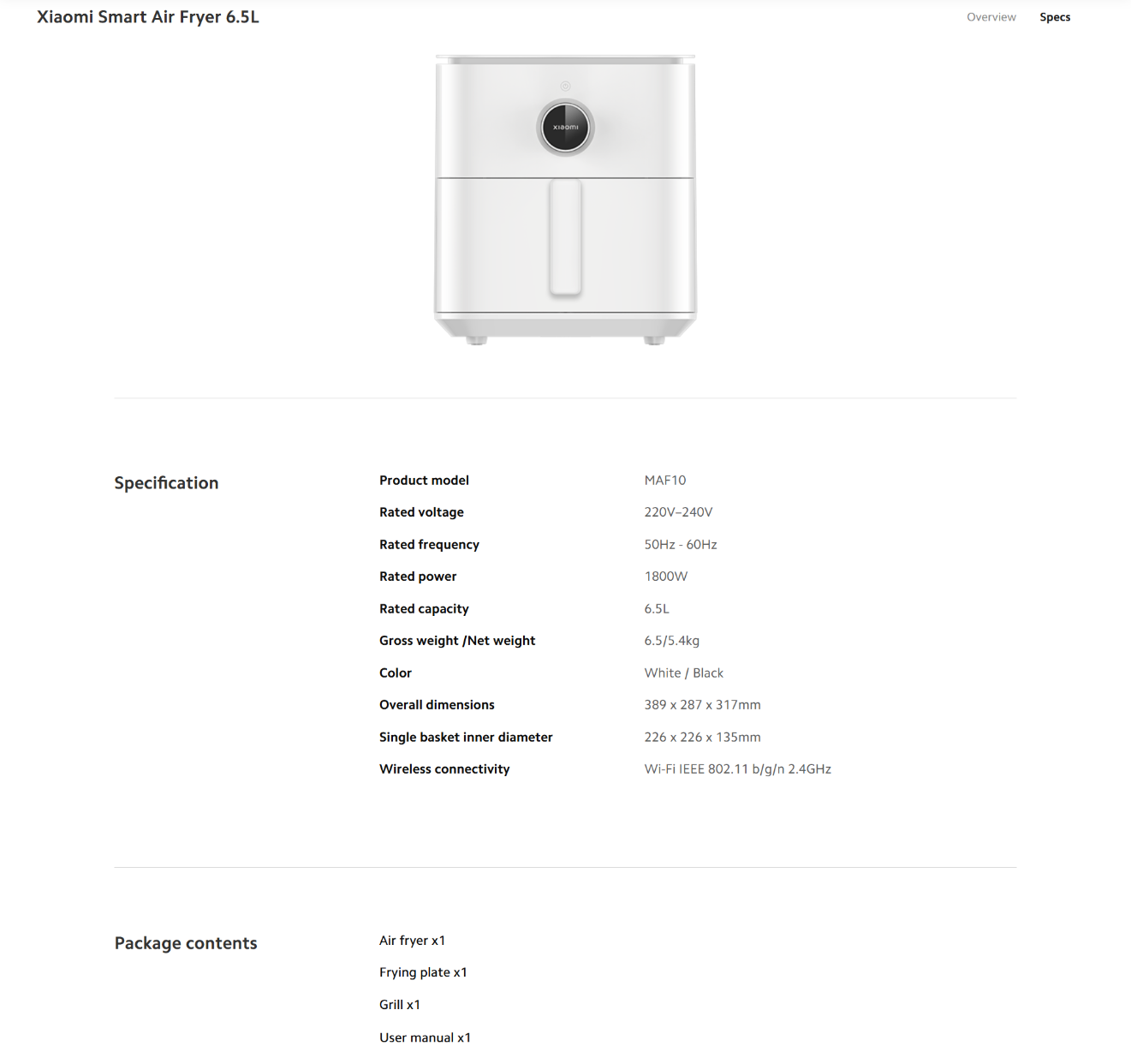 【 Xiaomi Smart Air Fryer 6.5L 】