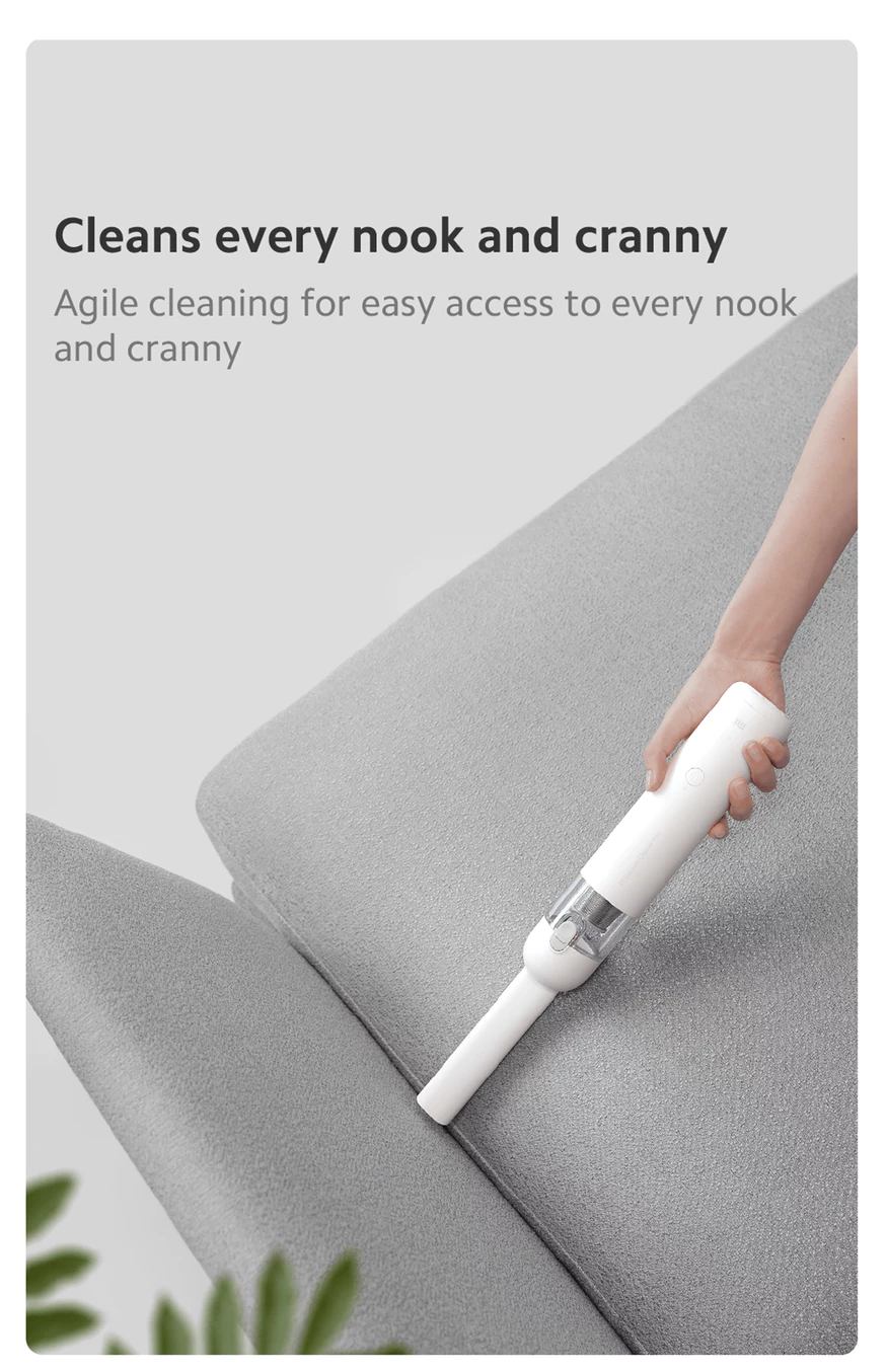 The Xiaomi Vacuum Cleaner Mini is designed for effortless, portable cleaning. Weighing just a fraction of traditional vacuums, this cordless and compact device easily tackles small messes in your home, car, or office. Its sleek and space-saving design allows for easy storage while being powerful enough to remove dust, crumbs, and debris from various surfaces.