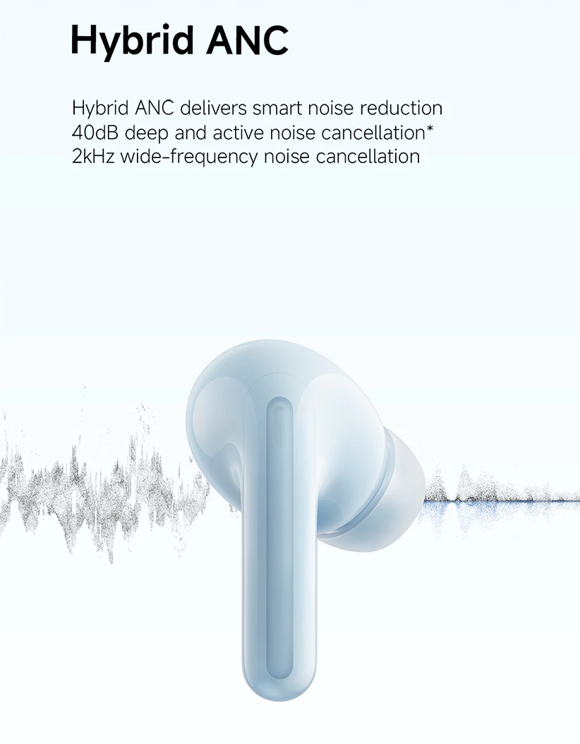 Immerse yourself in rich audio with the Redmi Buds 6 Lite, featuring a 12.4mm titanium-diaphragm driver for deep bass and crisp treble. Enjoy active noise cancellation (ANC) up to 40dB, blocking out distractions for a truly immersive experience.