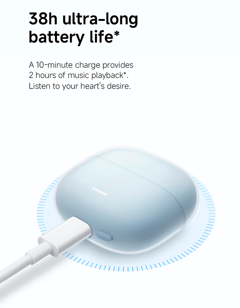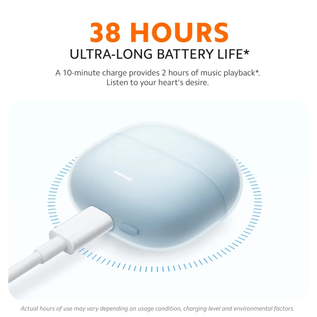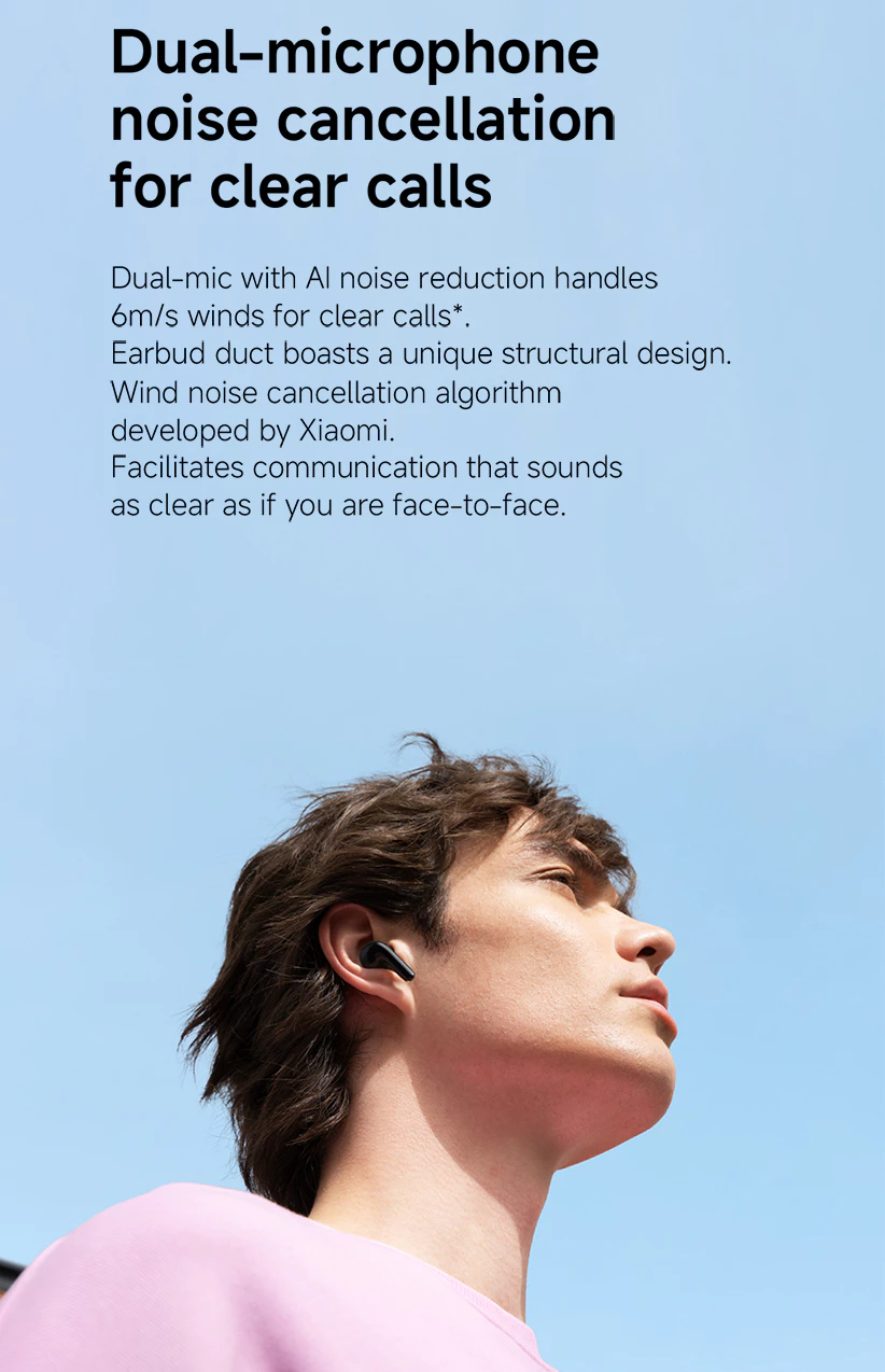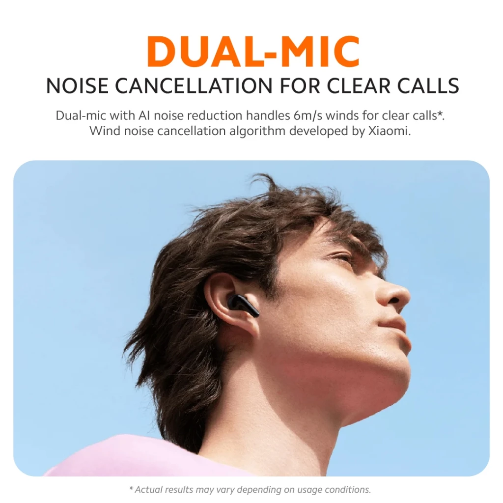 The dual-mic AI noise reduction ensures clear calls, even in noisy environments, while the Xiaomi Earbuds app lets you fine-tune your listening with four preset EQ modes and one customizable setting.