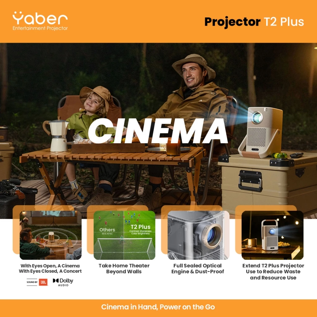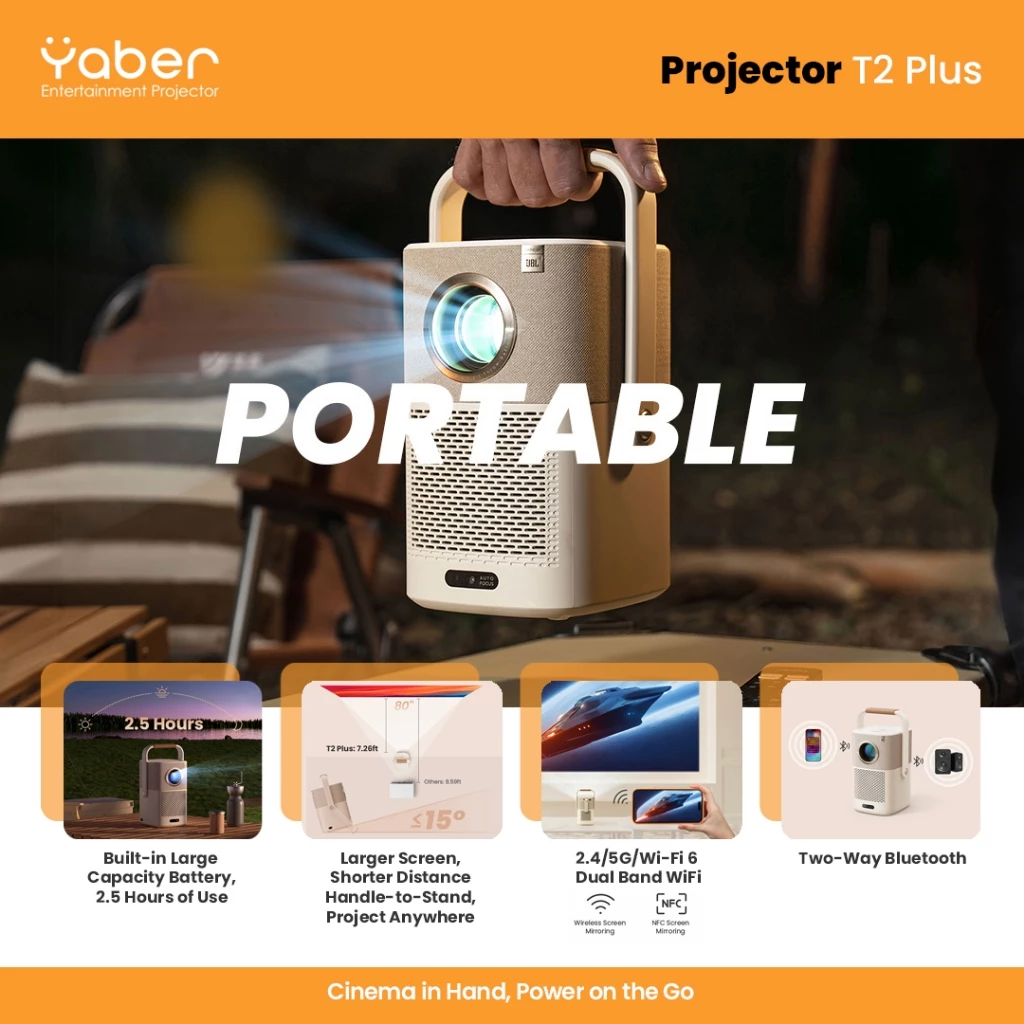 - 1 x Yaber Projector T2 Plus 1080 FHD with JBL and Dolby Audio, 2.5 hours battery, Bluetooth 5.0 and Wifi 6