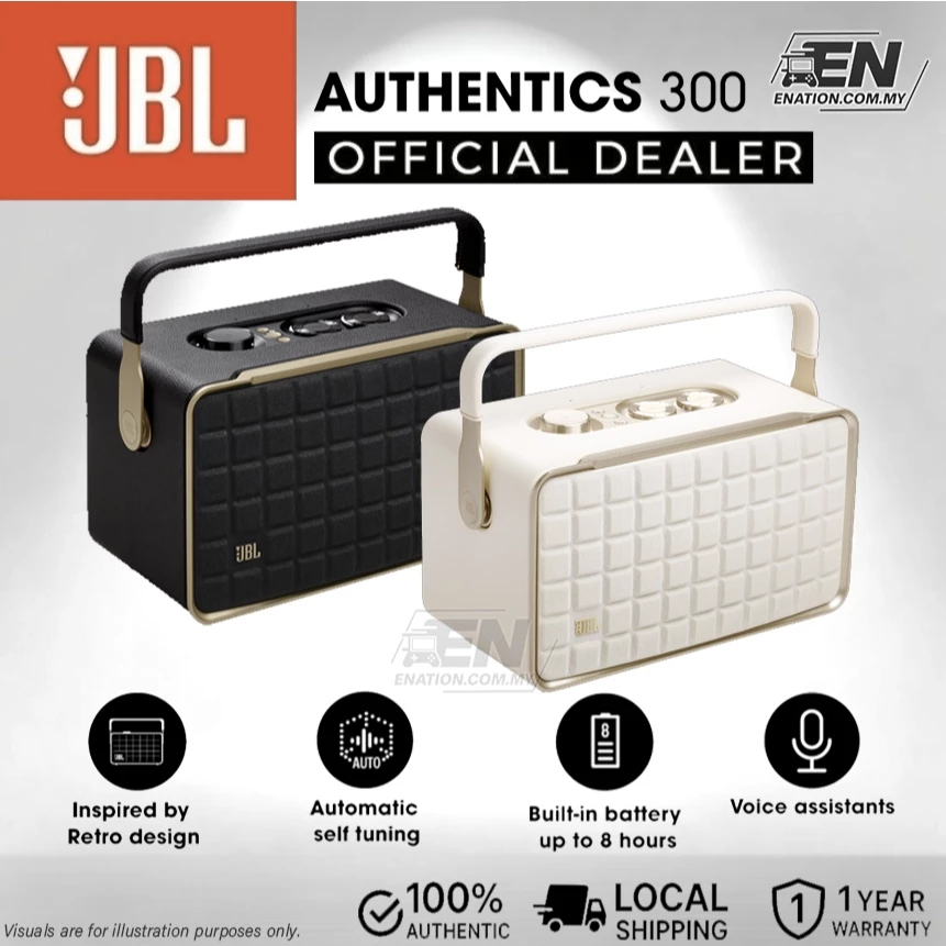 Enjoy retro style, amazing audio, and built-in dual voice assistants* anywhere in your home. With the JBL Authentics 300 speaker’s leatherlike enclosure, convenient metal handle, and built-in rechargeable battery, you can take your music with you — from the kitchen for your dinner-prep playlist to the bedroom for your wind-down podcast.