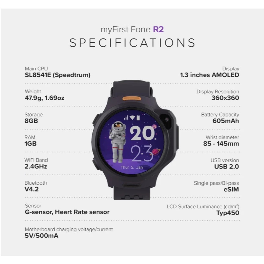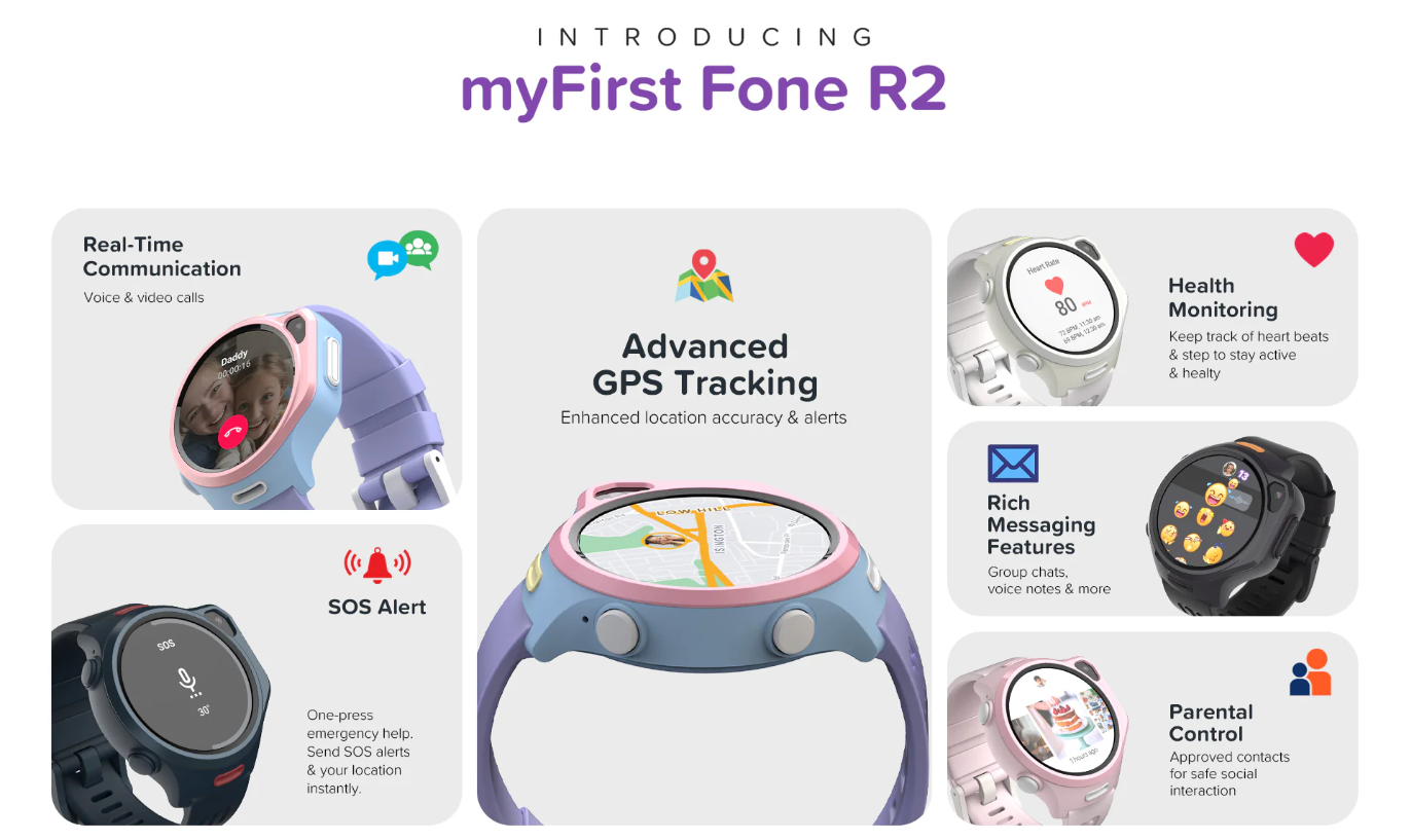 myFirst Fone R2 - 4G Smart Watch Phone for Kids with Voice Video Call | AMOLED Display GPS Tracking Our price: RM 899.00 each Common price: RM 1,099.00