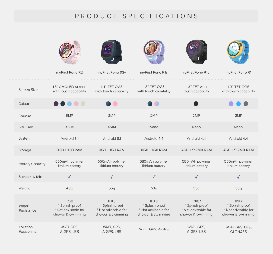 *This model is only compatible with myFirst eSIM, you will not be able to change to other network carrier's eSIM.