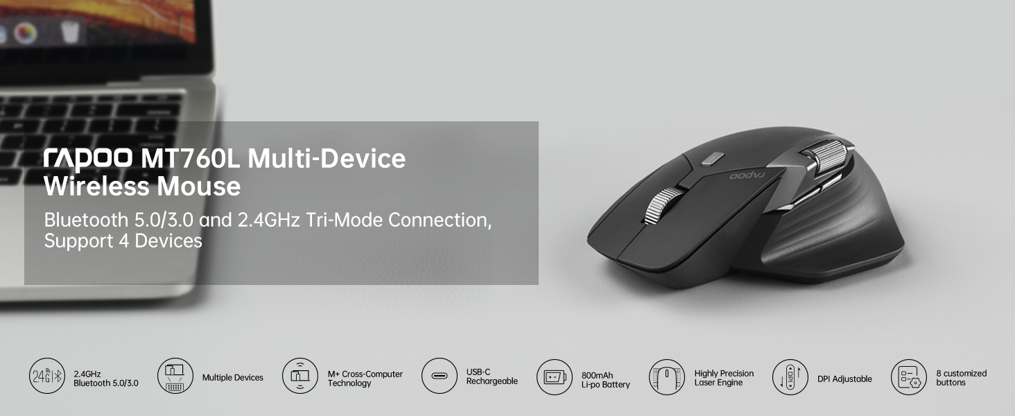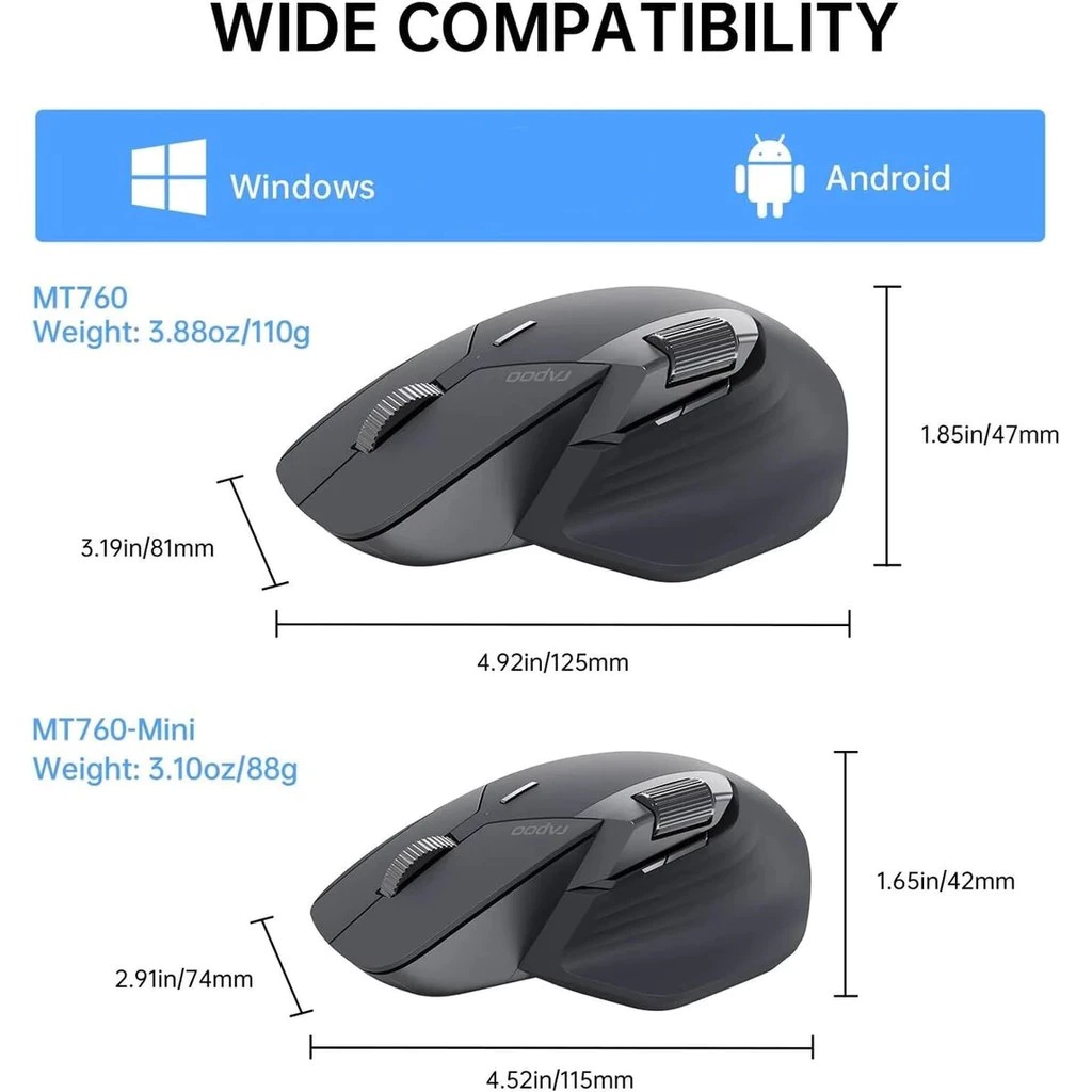 Rapoo MT760L/ MT760M Rechargeable Wireless Mouse | Up to 4000 DPI | Easy-Switch Up to 4 Devices: MT760M (Mini) Black