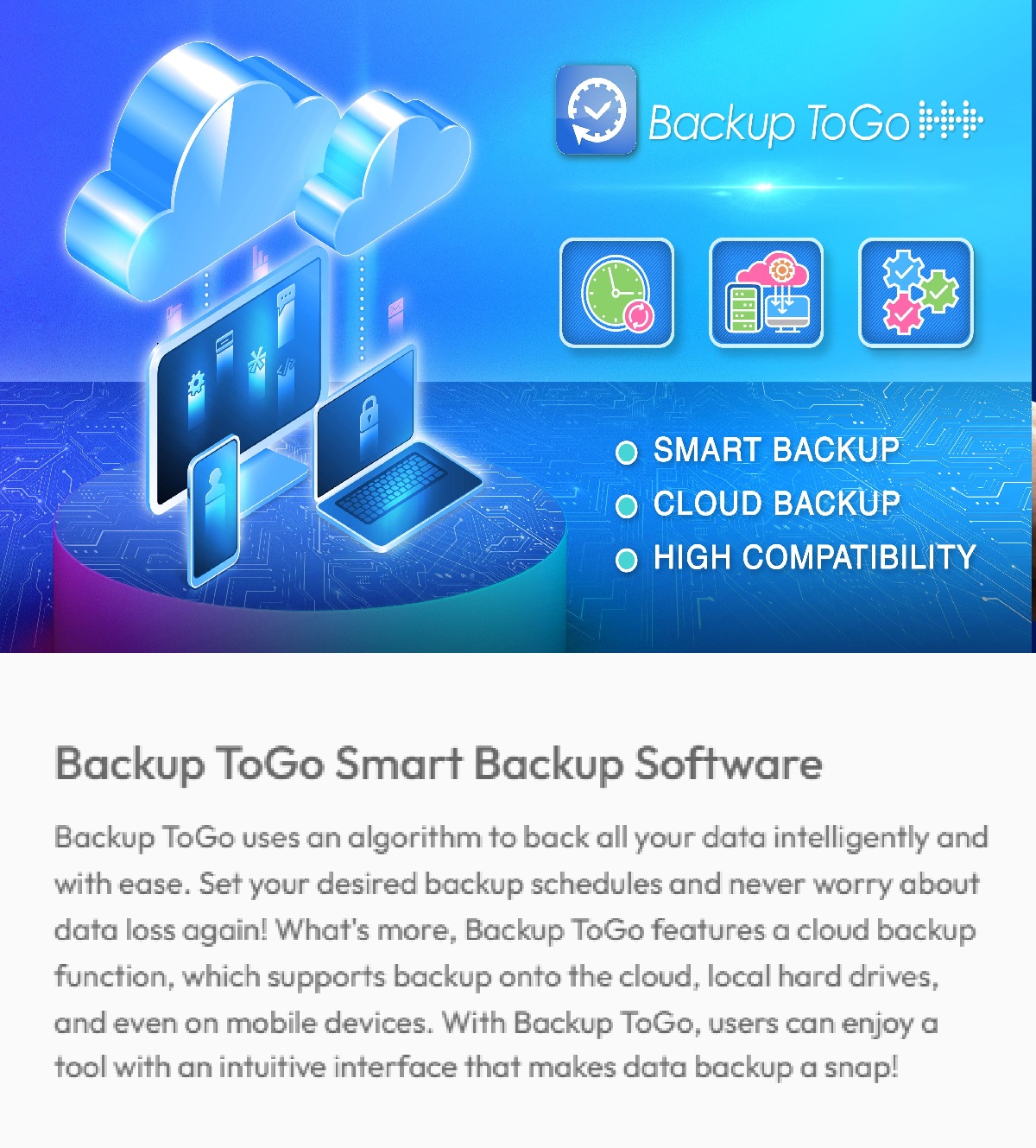 Backup To Go Smart Backup Software- Supports backup onto the cloud, local hard drives, and even on mobile devices.