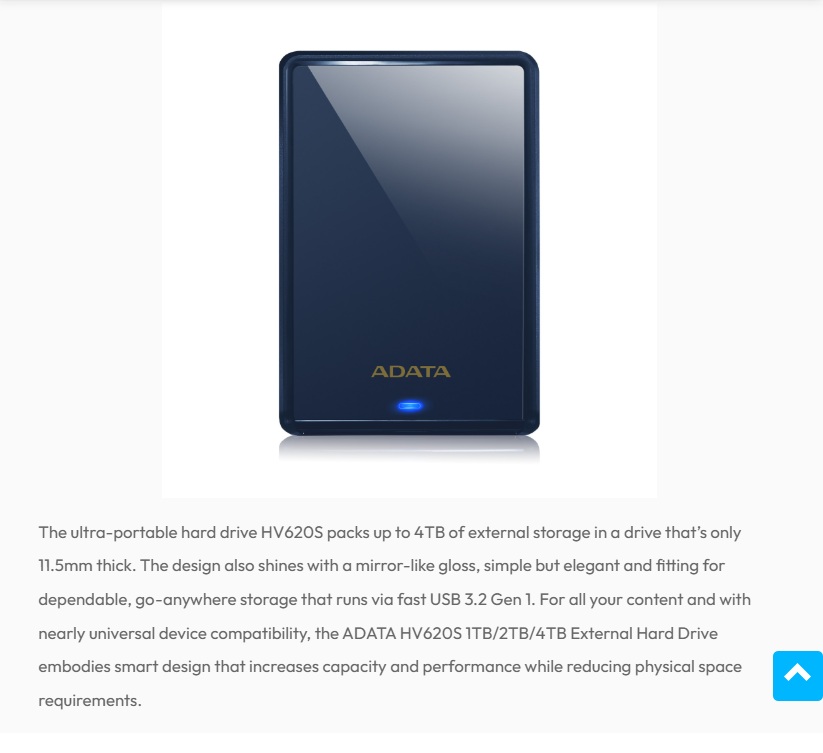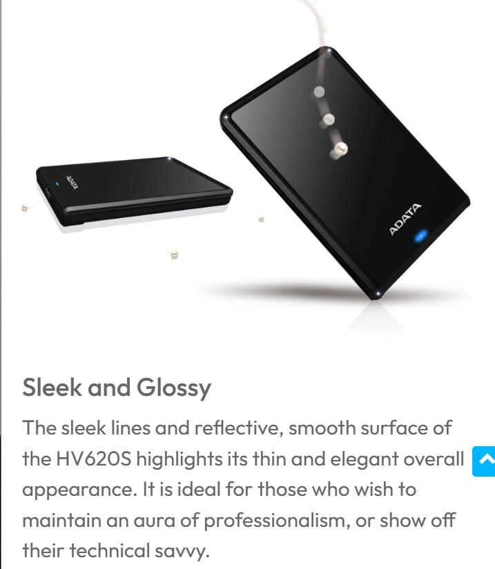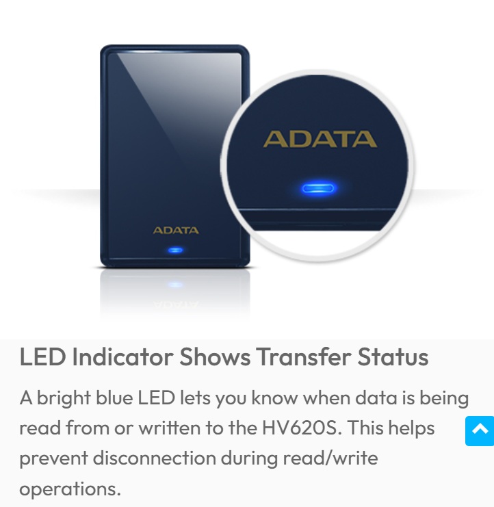 ADATA HV620S Portable External HDD 1TB/2TB - 3 Years Limited Warranty Key Features: Scratch-Prevention Design- Raised lip on the edge of the drive protects the surface Sleek and Glossy- ideal for who wish to maintain an aura of professionalism, or show off their technical savvy. LED Ind ...Read more