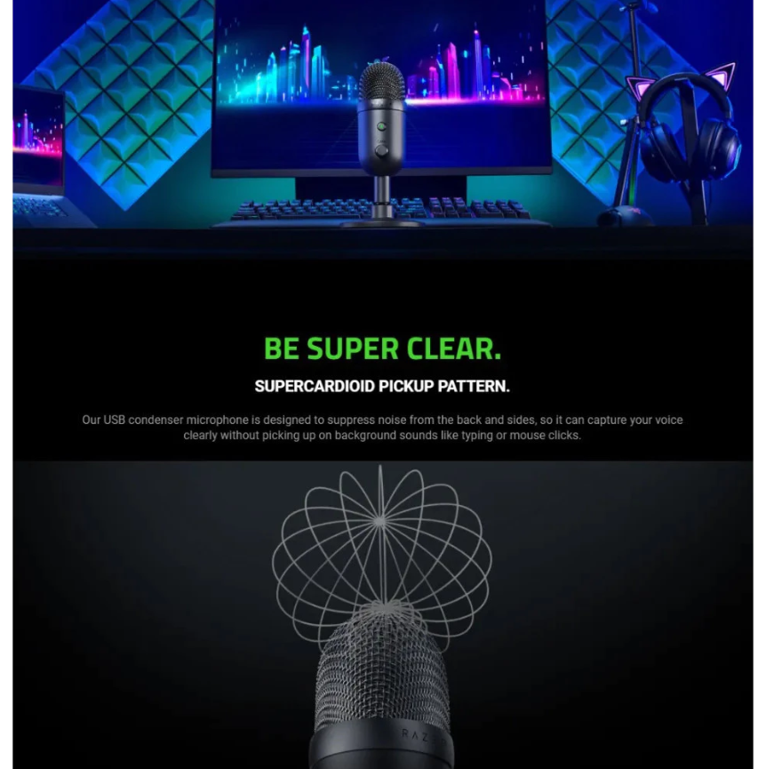 Sound like a pro and take your production quality up a notch with the Razer Seiren V2 Pro—a dynamic USB microphone designed for those serious about streaming. Whether you’re an industry vet or a professional-to-be, enjoy top-notch voice clarity and quality thanks to its suite of high-end features.