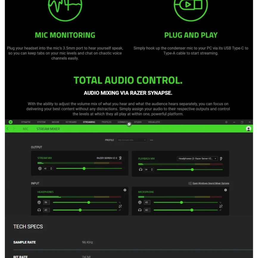 — TOTAL AUDIO CONTROL. AUDIO MIXING VIA RAZER SYNAPSE.