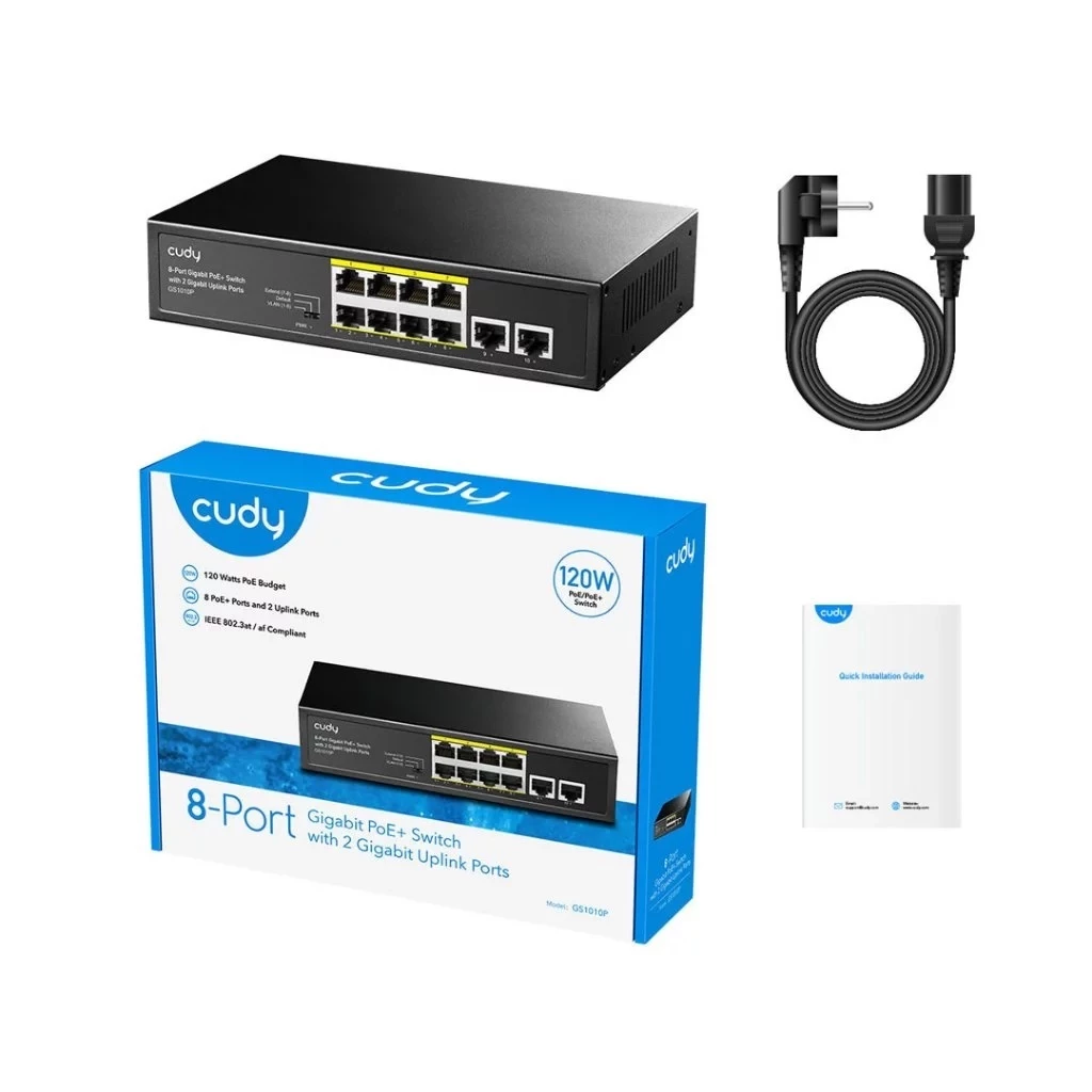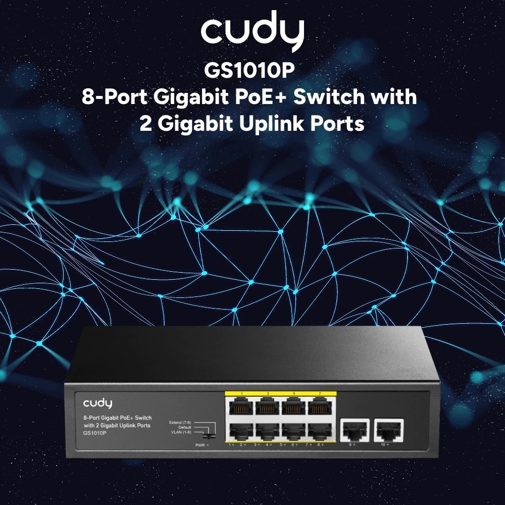 8-Port Gigabit PoE+ Switch with 2 Gigabit Uplink Ports