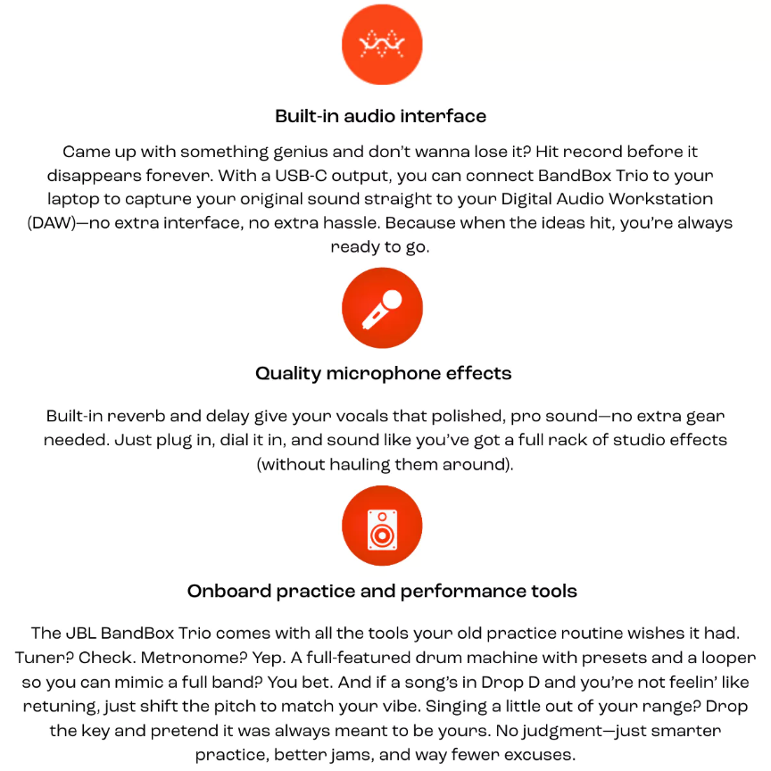 Whether you’re bending your first note or sliding into a solo, BandBox Trio changes the way you practice, jam, and create. Plug in, turn up, and take the lead—this amp’s got your back.