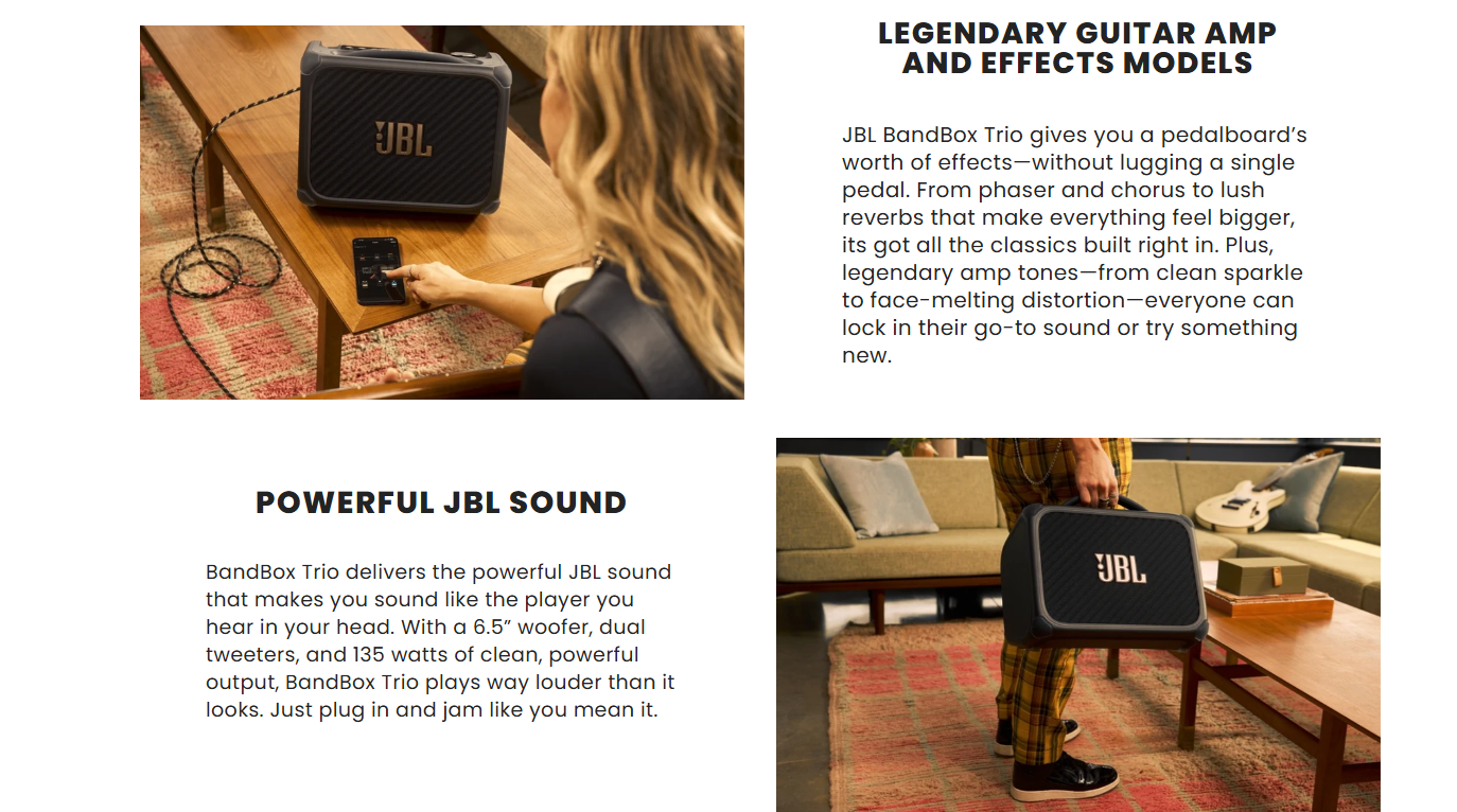 The JBL BandBox Trio is an all-in-one, AI-powered practice amp and speaker that rewrites how you riff, jam, and spark ideas. Stream any track and BandBox Trio instantly separates instruments and vocals in real time, so you can mute parts, isolate tricky solos, or change keys. It’s like having bandmates who are actually playing with you.