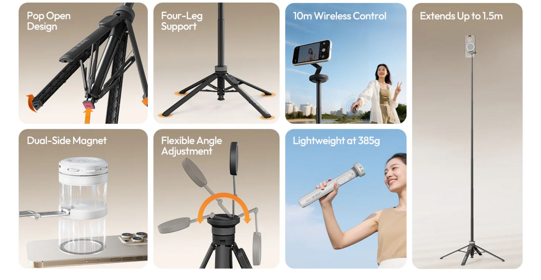 Universal tripod: compatible with 99% of smartphones on the market. iPhone Series 12 to 17 can be used directly or with a MagSafe case. Other phones (such as Google Pixel/Samsung/Motorola) can be used with the included magnetic ring.