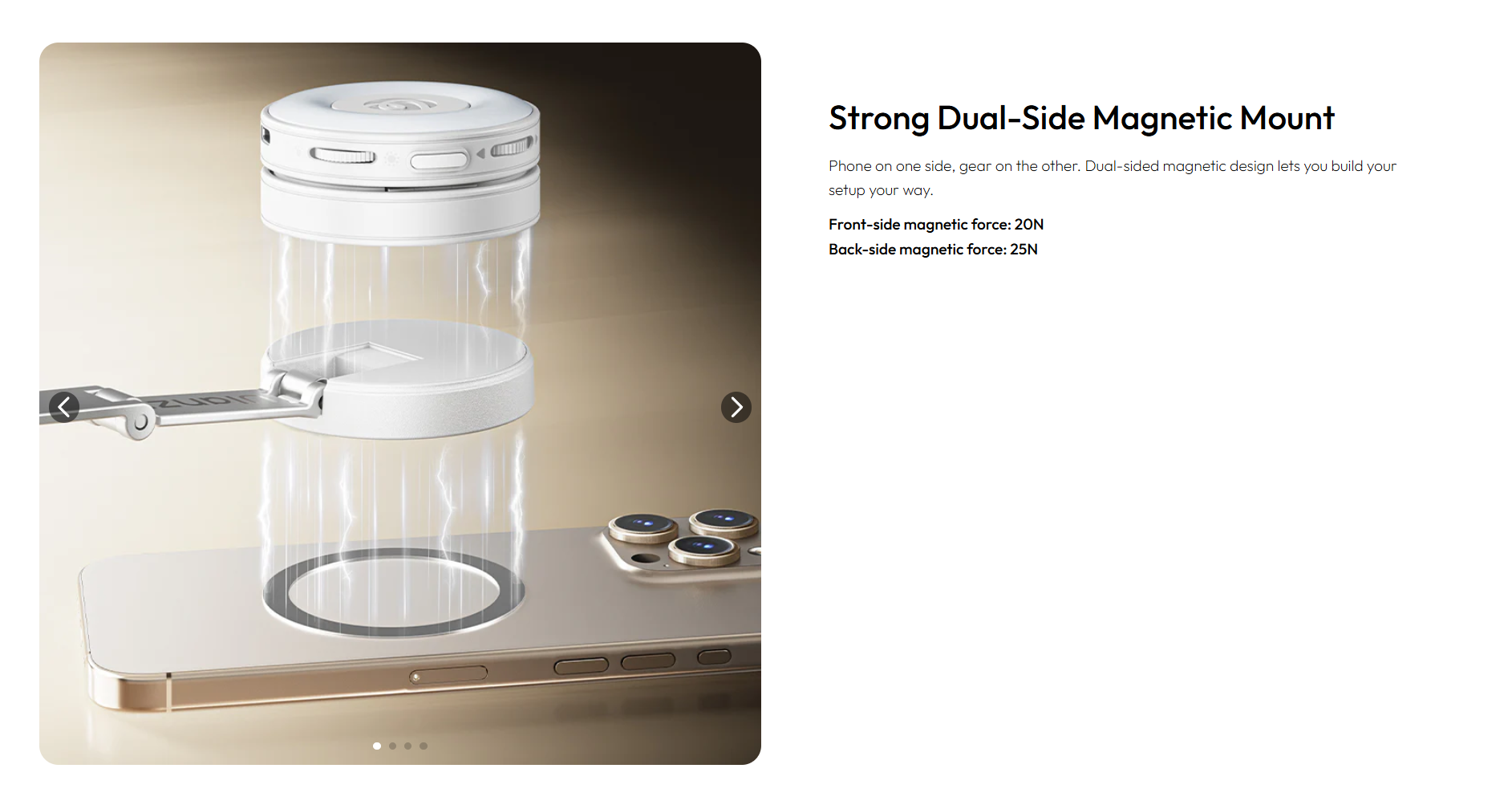 Equipped with powerful N52 magnets with a magnetic force of up to 25N. (Front magnetic force: 20N, rear magnetic force: 25N)