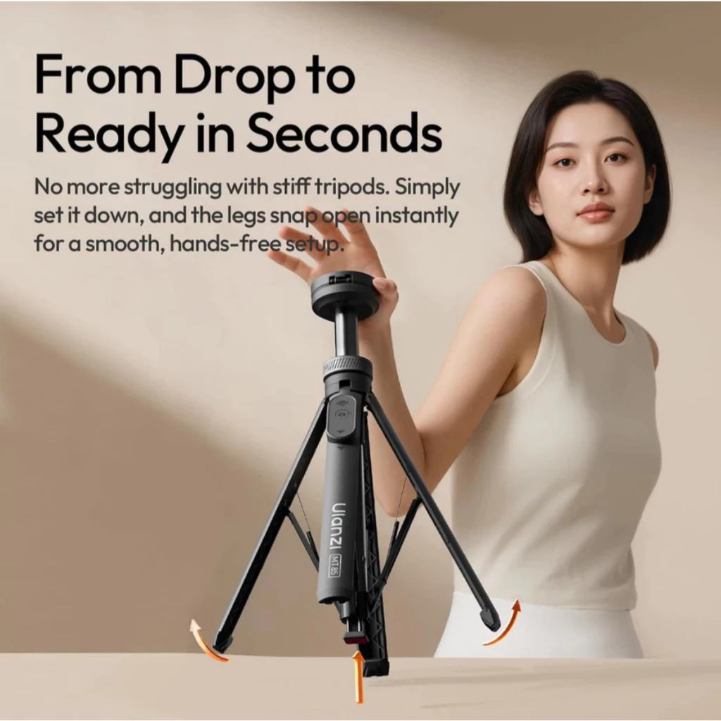 No more struggle with stiff tripods. Just put it down and the legs open instantly for a smooth, hands-free setup.