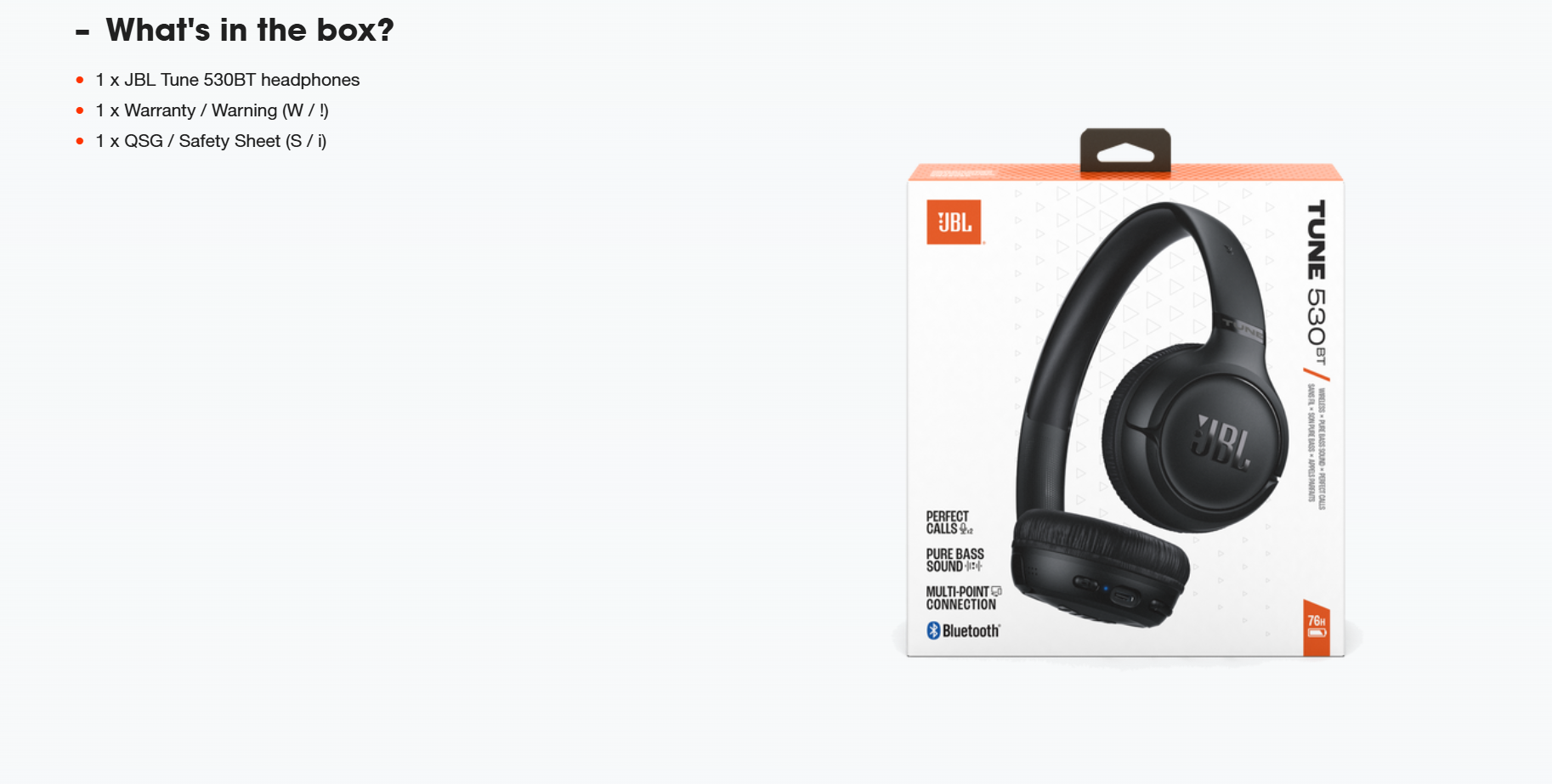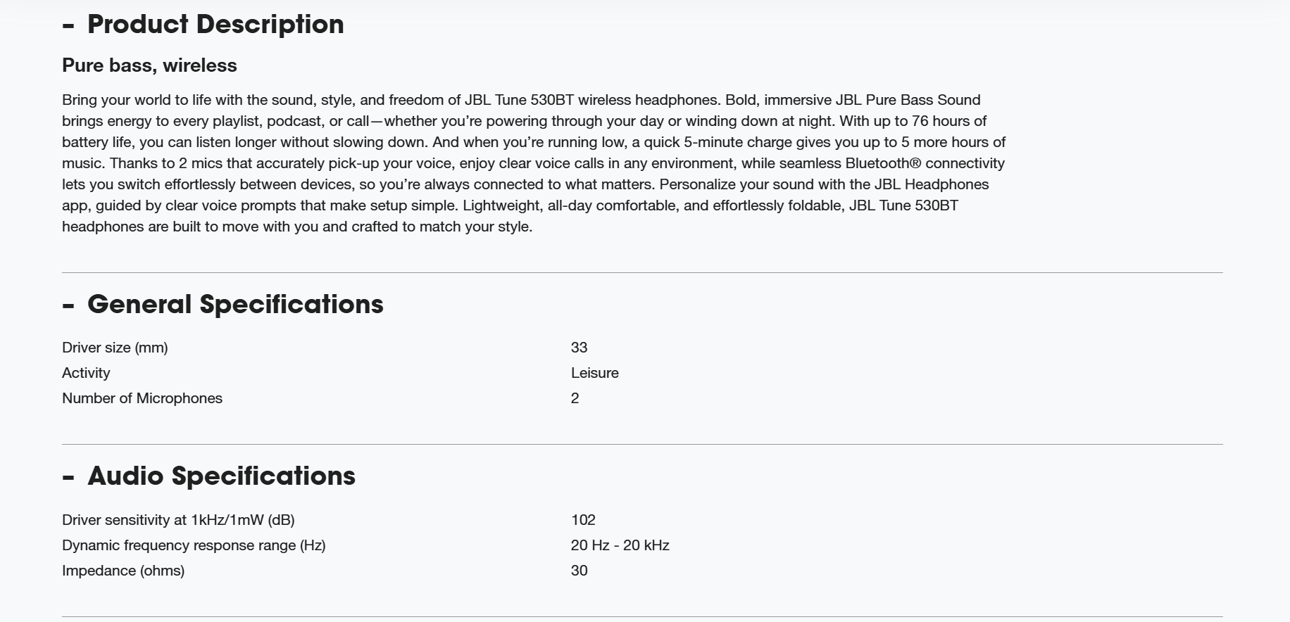 Pure bass, wireless. Bring your world to life with the sound, style, and freedom of JBL Tune 530BT wireless headphones. Bold, immersive JBL Pure Bass Sound brings energy to every playlist, podcast, or call— whether you’re powering through your day or winding down at night. With up to 76 hours ...Read more