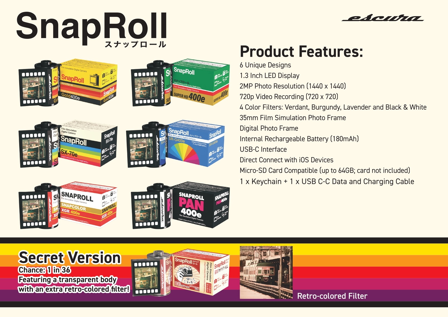 This blind box is also the perfect companion for parties, whether as a surprising gift, a unique collectible, or a fun experience to share with friends. SnapRoll offers users limitless possibilities! With six unique retro designs and one mystery version, each unboxing is an exciting adventure waiting to be unveiled.