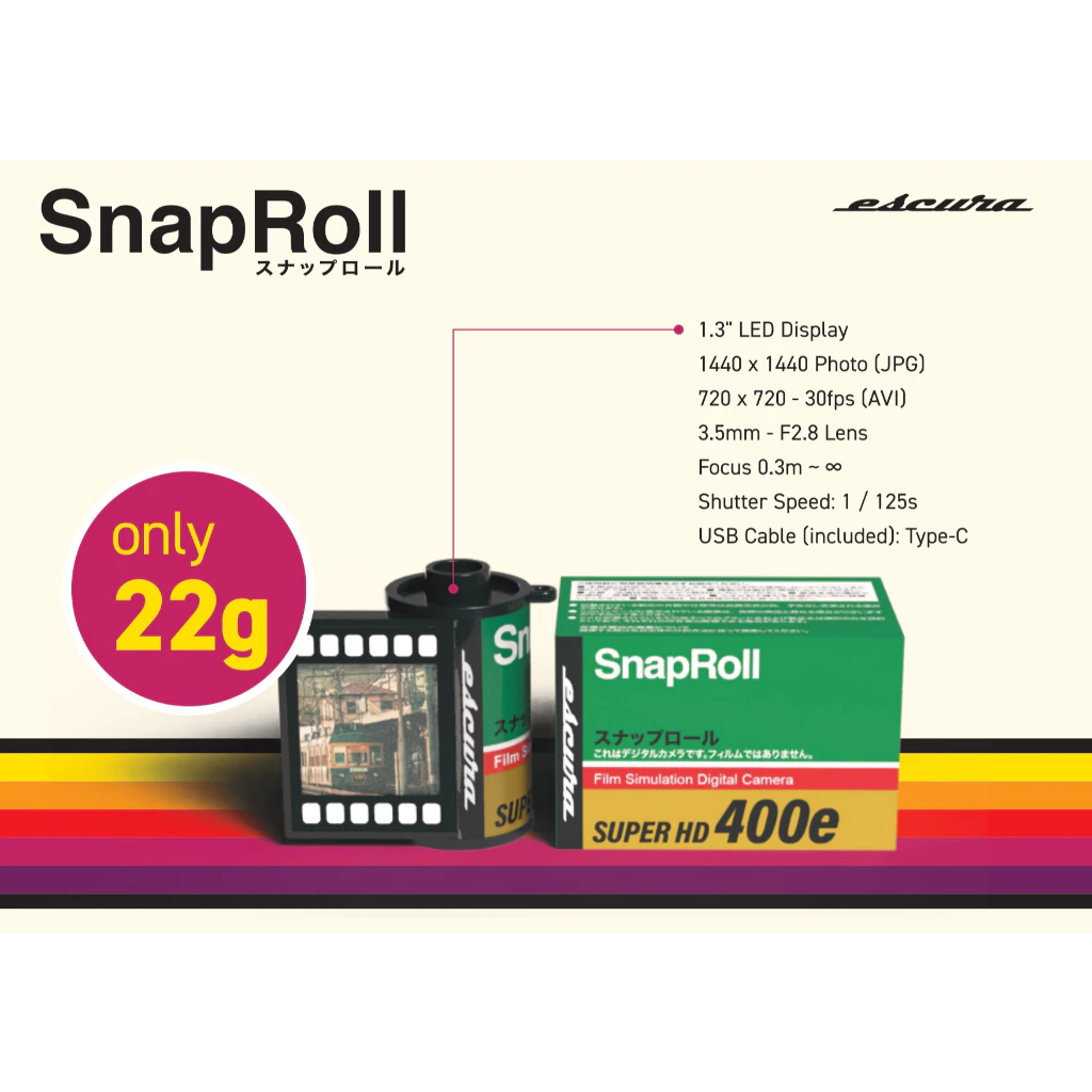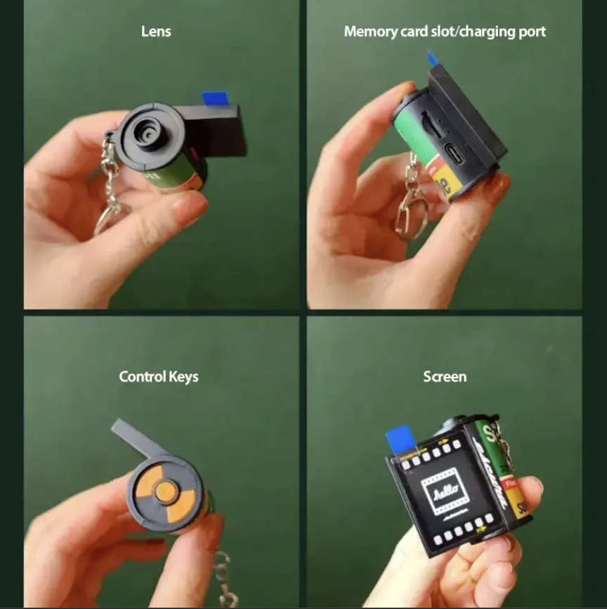 Retro film-roll design · Pocket-sized digital camera